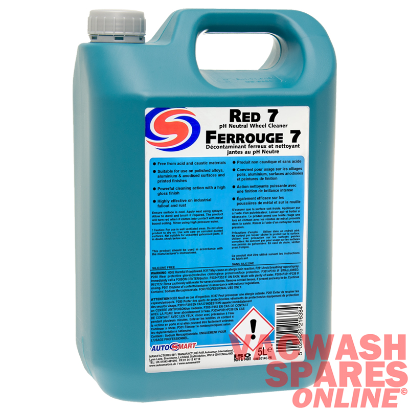 Red 7 is a highly effective, yet pH neutral, wheel cleaner that turns red on contact with metal particles, such as fallout and brake dust. Added gloss enhancers leave metal surfaces looking like new. Red 7 is safe for all surfaces including paint, rubber, plastic, aluminium, polished alloy,carbon and even the most delicate wheels and brake discs. It is also perfect for removing light corrosion from tools, brake discs, diesel tanks etc.